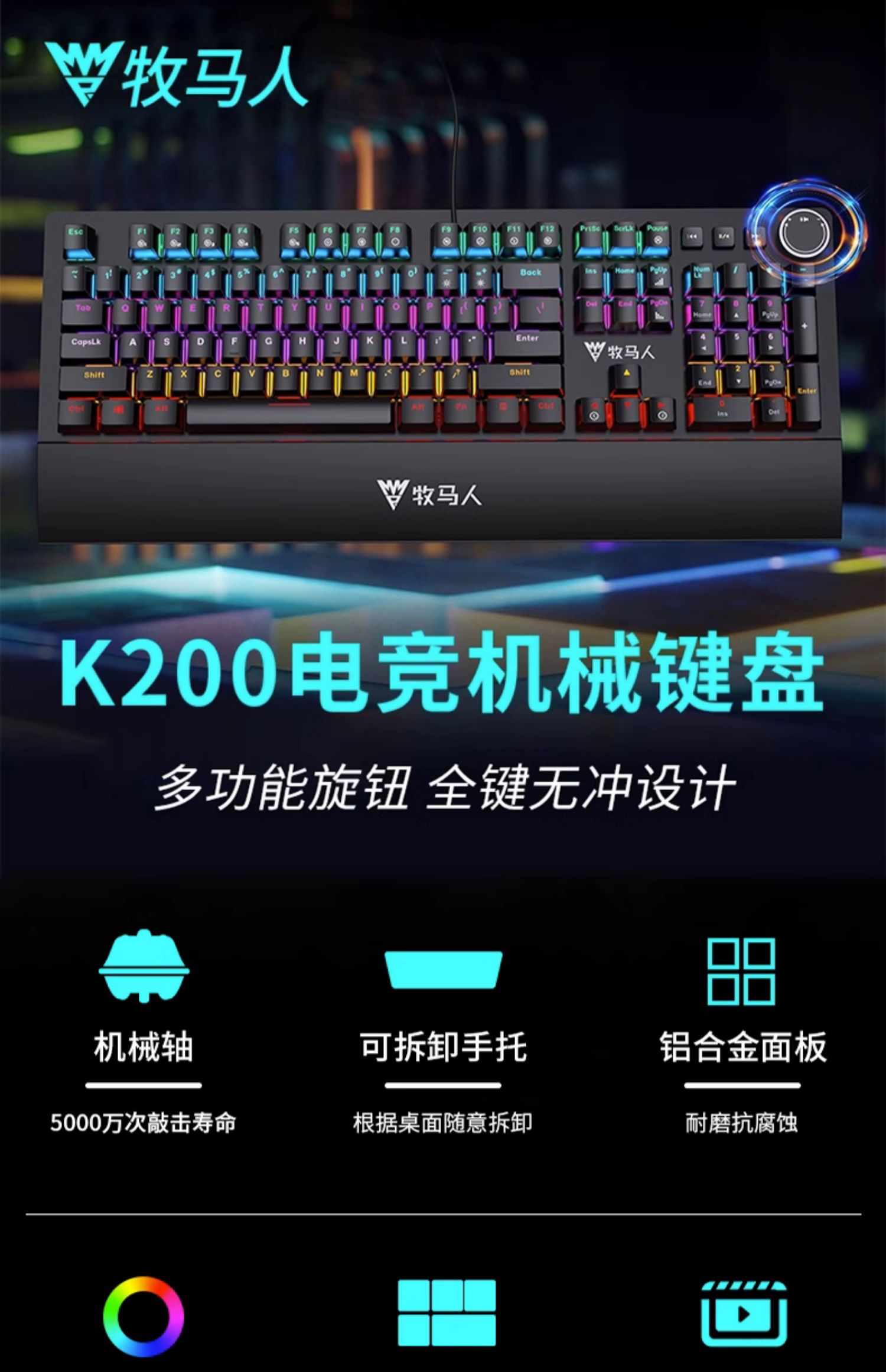 牧马人K200机械键盘鼠标套装游戏电竞台式电脑办公有线外设红青轴