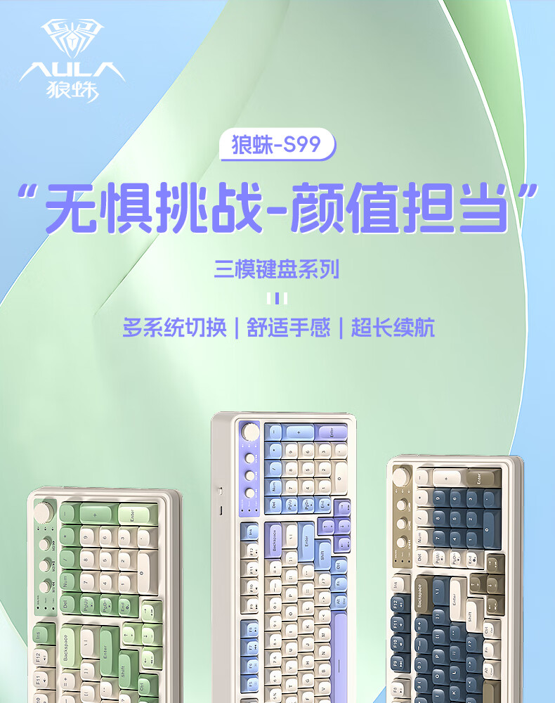 狼蛛(AULA)S99无线蓝牙有线三模键盘机械手感RGB背光拼色静音键盘鼠标套装
