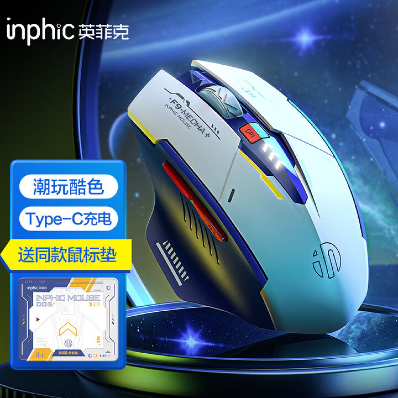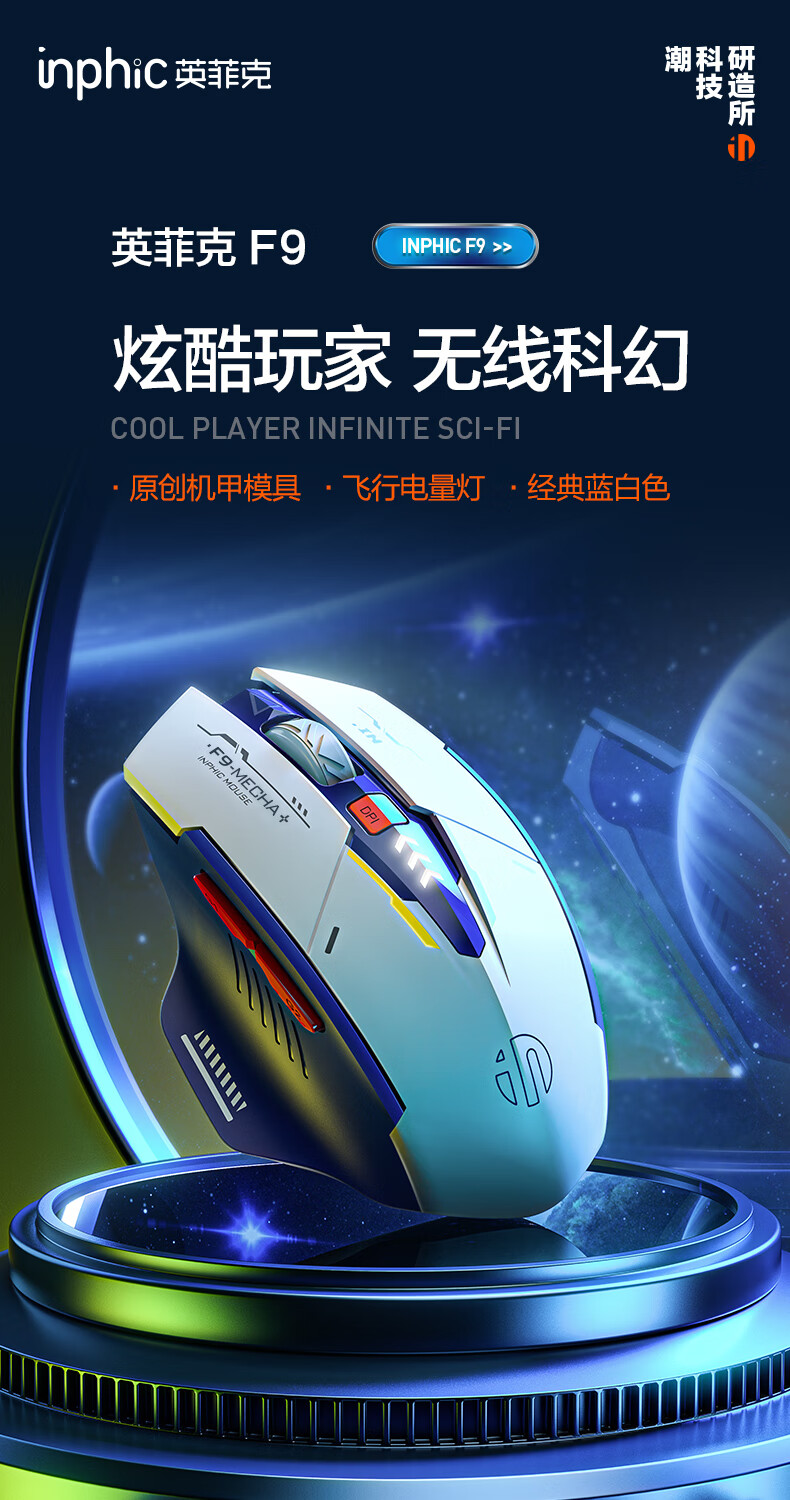 英菲克F9无线鼠标可充电静音办公人体工学电量显示适用于台式笔记本电脑
