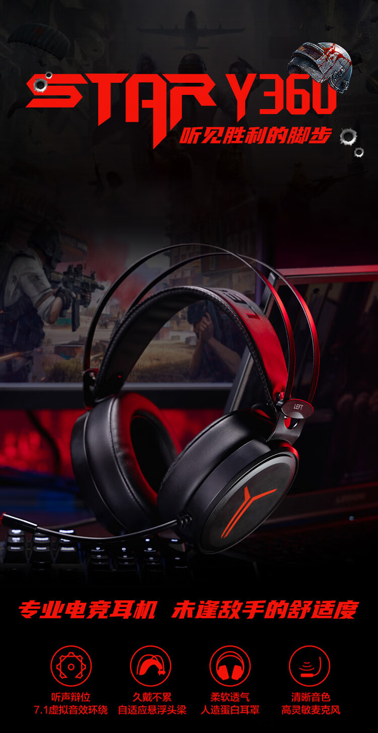 联想拯救者StarY360 USB7.1声道游戏耳机头戴式有线电脑电竞耳机耳麦