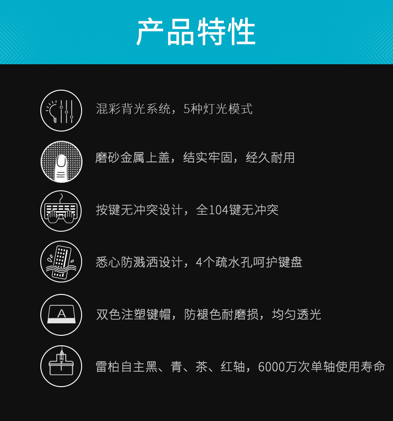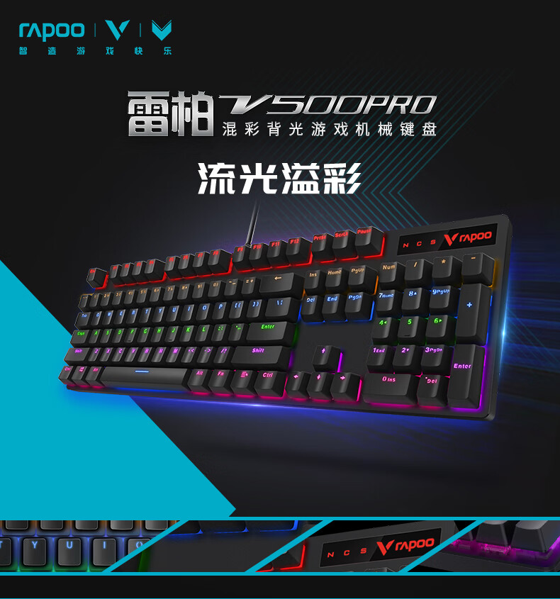 雷柏(Rapoo) V500PRO 有线背光机械键盘 104键全尺寸游戏电竞笔记本